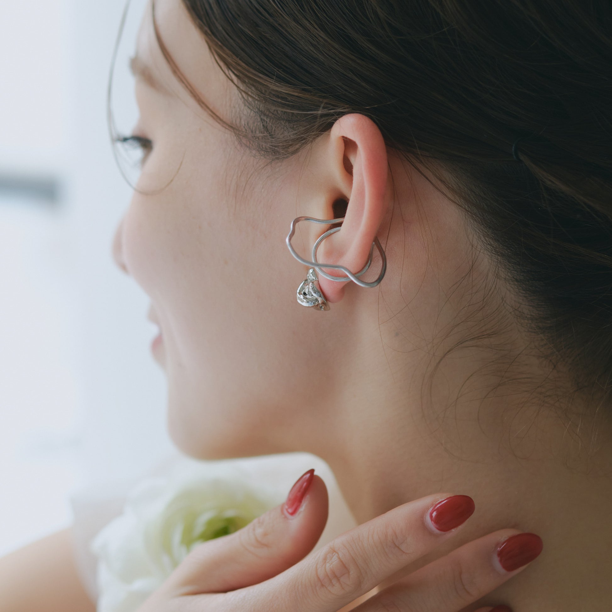 その儚げな影を、2本の線で繊細に描いたイヤーカフ。