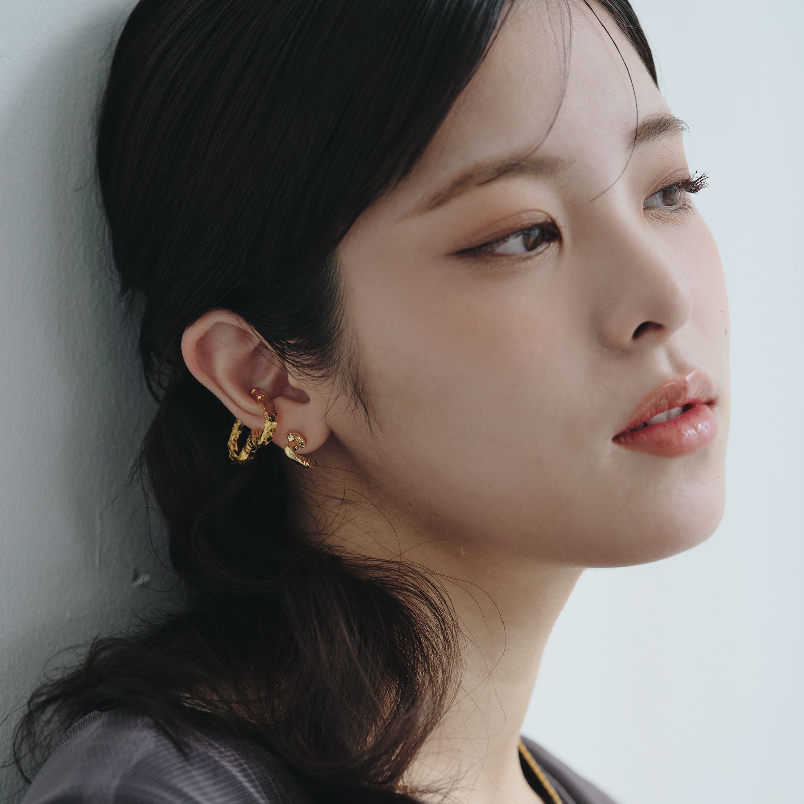 ピアスや他のイヤーカフとの重ね付けも